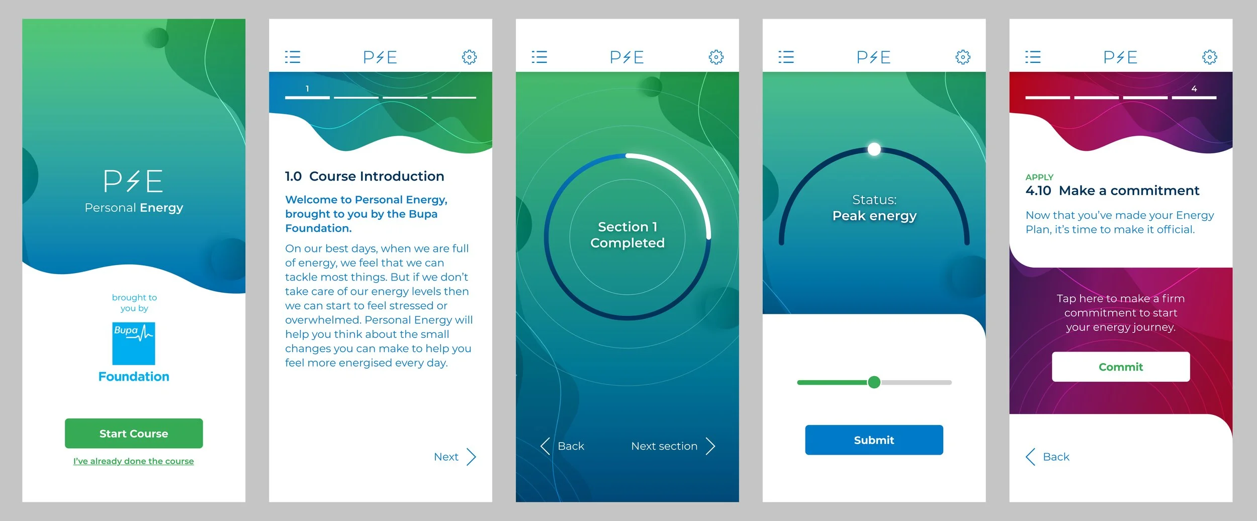 I was asked to design a product that would work in conjunction with a mental health course that Bupa run. The intention was for it to be a resource that users could either engage with after completing the course, or as a way of taking a digital version of the course.