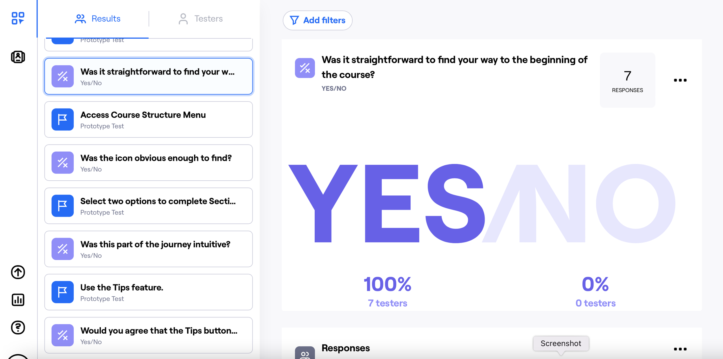 Once the wireframe was in a good place, I started preparing the groundwork for user testing. Using Maze, I constructed a number of tasks for users to complete based around key areas that I wanted to collect data on. At the first stage there were some valuable insights to pick up, including around accessing the course structure menu.