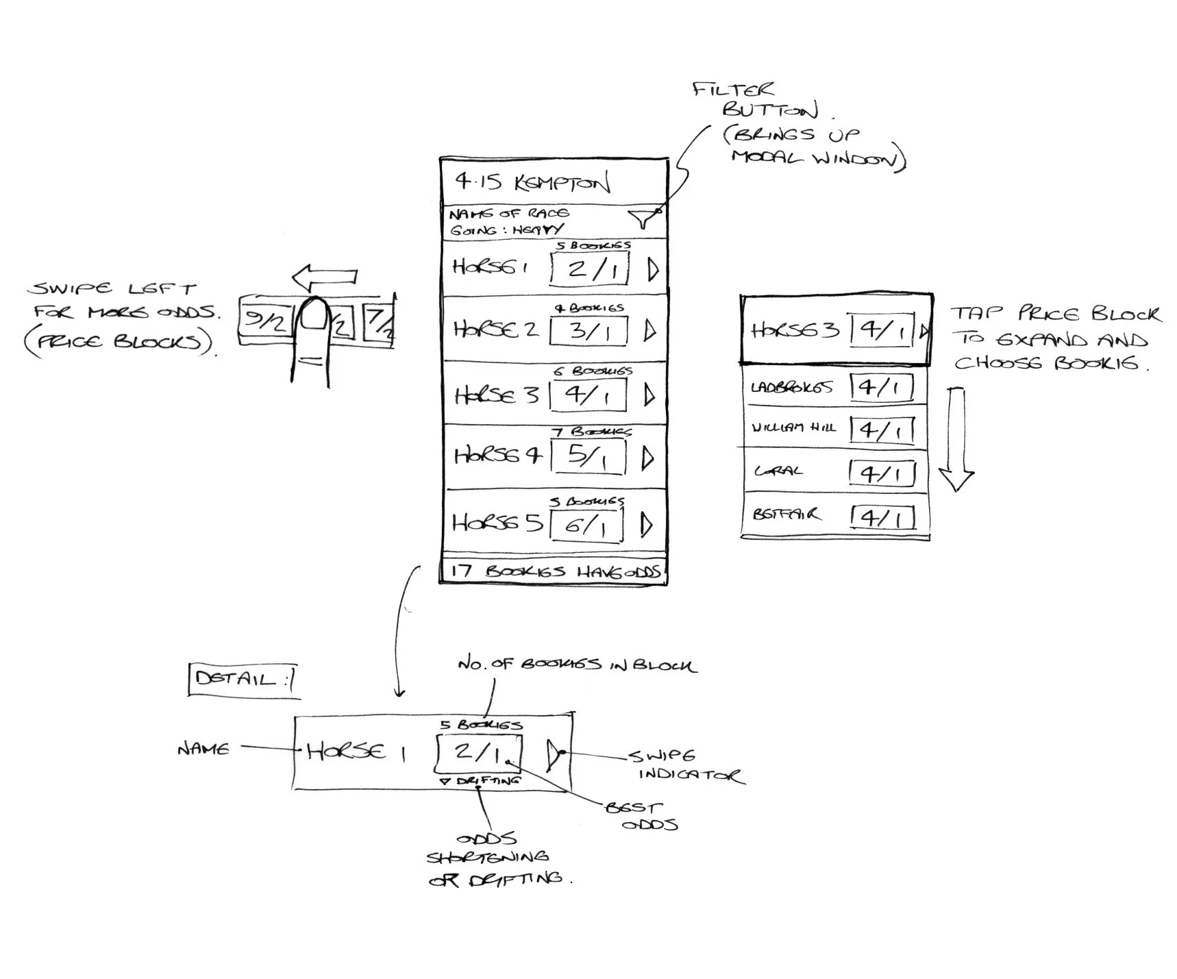 Solution - Instead of listing all bookmakers’ prices in a dense table, odds were grouped into interactive blocks.